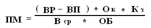 ВР – продолжительность работы предприятия в минутах; ВП – время простоя оборудования, в минутах; Вср – средняя продолжительность одной варки, в минутах; Ок – емкость котлов; Кз – коэффициент заполнения емкостей; ОБ – емкость одного блюда, в литрах.