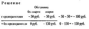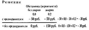 В данной задаче ярко проявился неотвратимый характер риска: уклониться от решения в рискованной ситуации невозможно. Хотя ситуация весьма неопределенная (то ли будет авария, то ли нет), решение требуется вполне определенное: или с предохранителем, или без него. Третьего не дано.