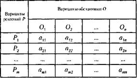 условия обстановки (состояние «природы») нам точно не известны, однако о них можно сделать п предположений О1, O2, ., Om, эти предположения являются как бы стратегиями «природы»;