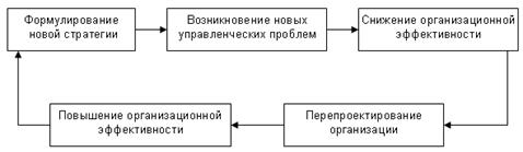 В 1962 г. А. Чандлер сформулировал принцип, согласно которому проектирование организации должно соответствовать стратегии, выбранной фирмой. Им был сделан вывод о том, что со сменой стратегии перед организацией возникают новые проблемы, решение которых непосредственно связано с проектированием новой организационной системы для фирмы. Отказ от перепроектирования организации приводит к тому, что фирма оказывается не в состоянии достичь принятых ею целей.