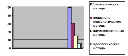 В ходе опроса в отделении на тему: "Какие методы управления вы считаете наиболее эффективными" респонденты предпочли экономические методы управления, хотя на практике в основном реализуются административные методы управления.