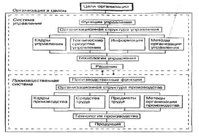 Рис. 2. Состав элементов производственной системы и системы управления организации