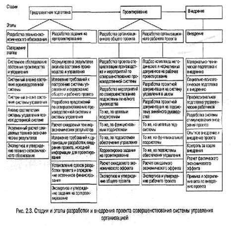 Процесс разработки и внедрения проекта системы управления состоит из трех стадий: предпроектной подготовки, проектирования и внедрения.