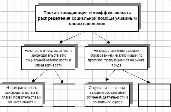 Рассмотрим пример построения дерева для проблемы, связанной с распределением социальной помощи. Ниже приведен фрагмент дерева.