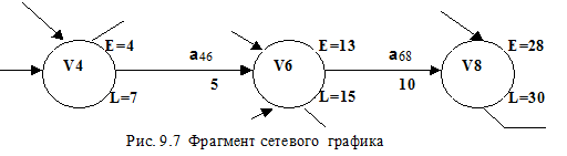 . Каждый из этих видов ресурса мы проиллюстрируем на фрагменте некоторой сетевой модели (рис. 9.7). Предположим, что единица времени равна одному дню.